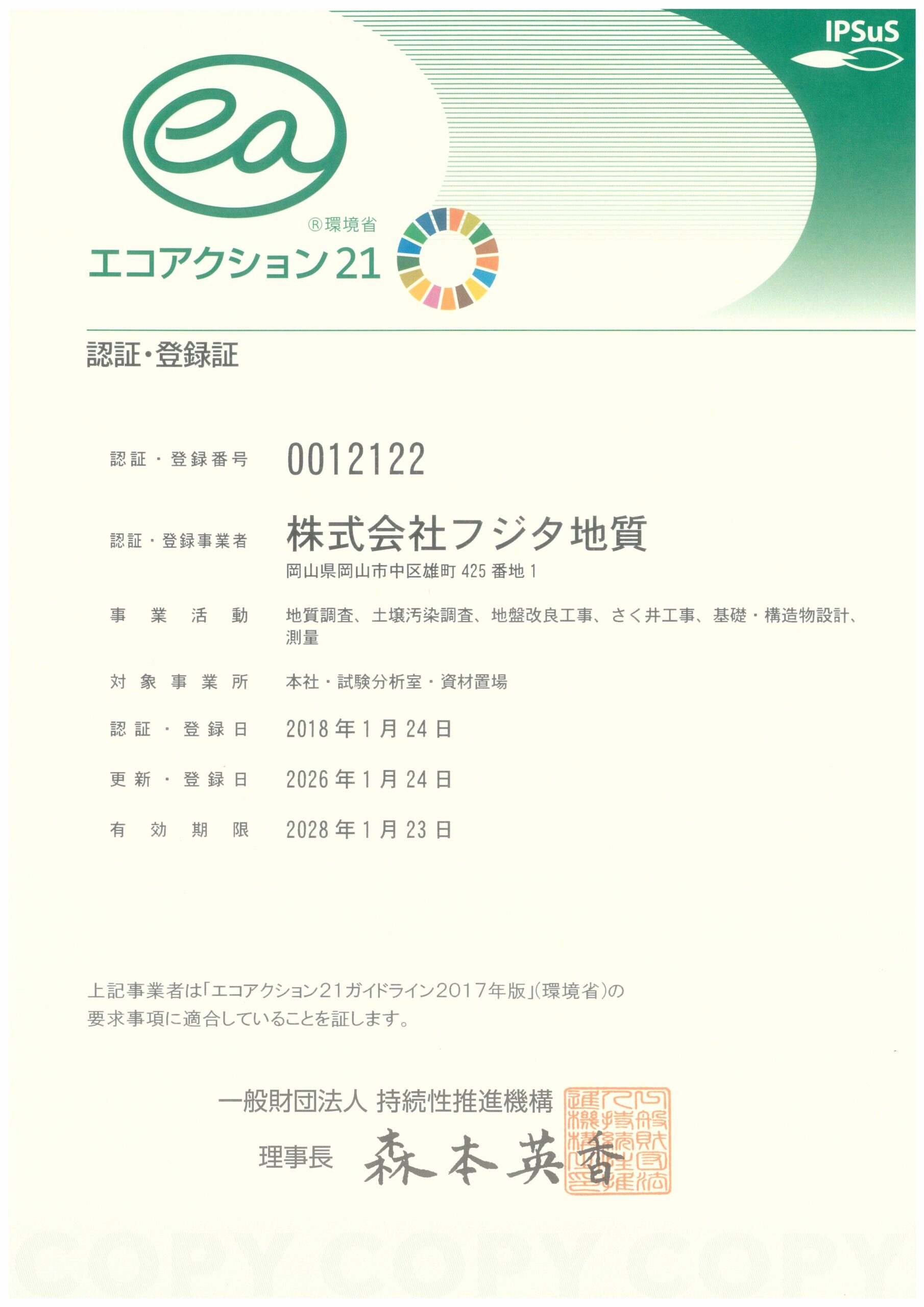 エコアクション21更新手続きが完了しました